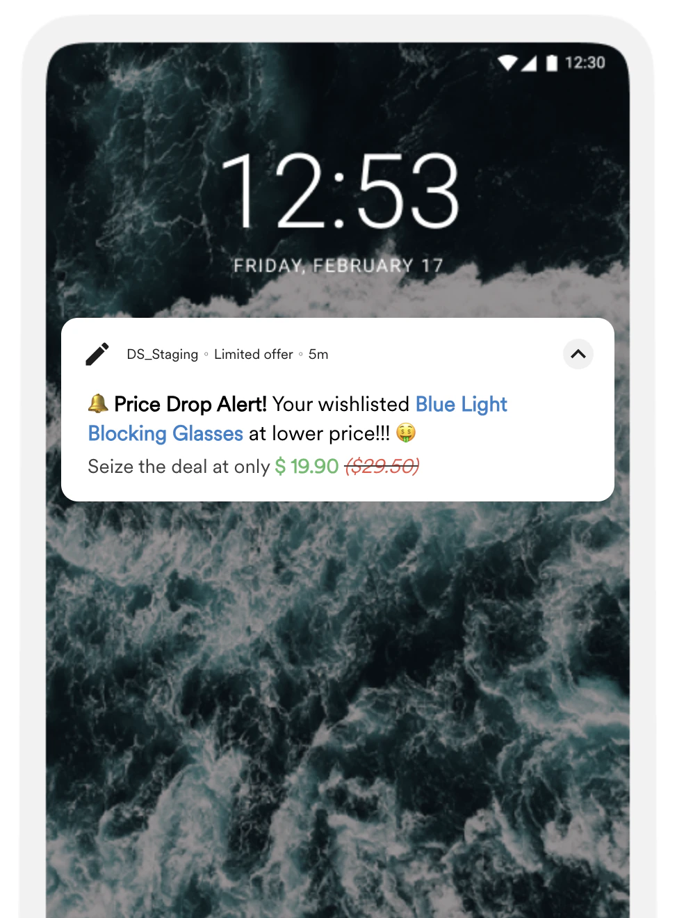 - Informing users that the flight tickets they’ve saved are now available at a lower price.