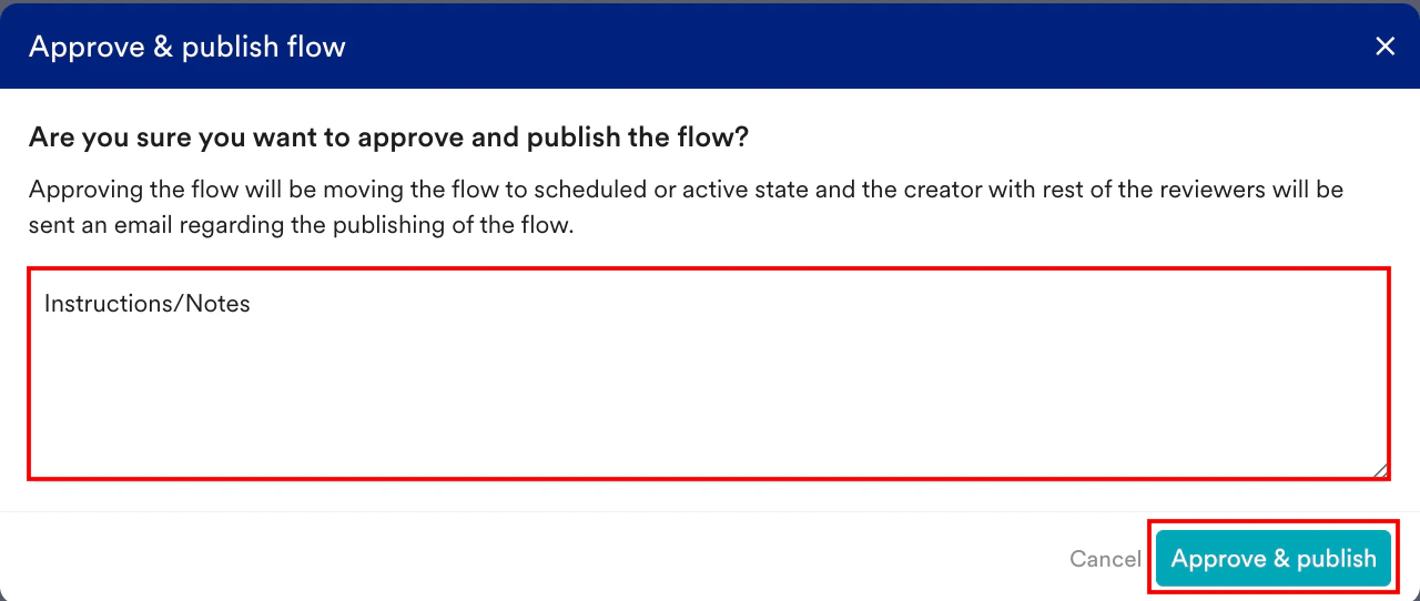 Edit the flow: You can edit a flow that is Under Review. After making the edits, you must resend the flow for another review by clicking Update and send for approval. Then, repeat steps 3 through 5.