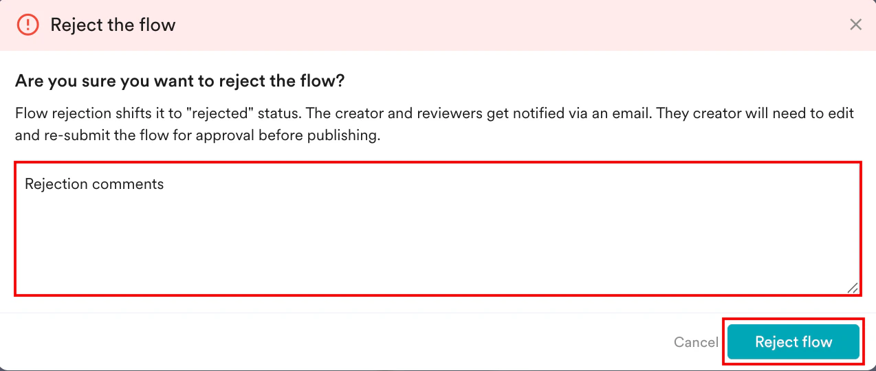 - When a flow is rejected, creators can find the approver’s comments in their email notification and the Flow Audit logs.