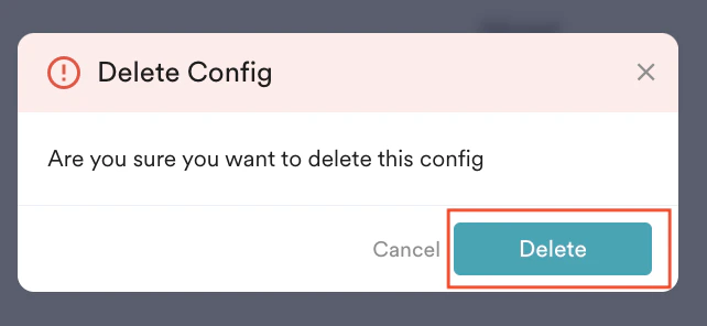 The Delete Config pop-up window will appear, prompting for confirmation to delete the config.