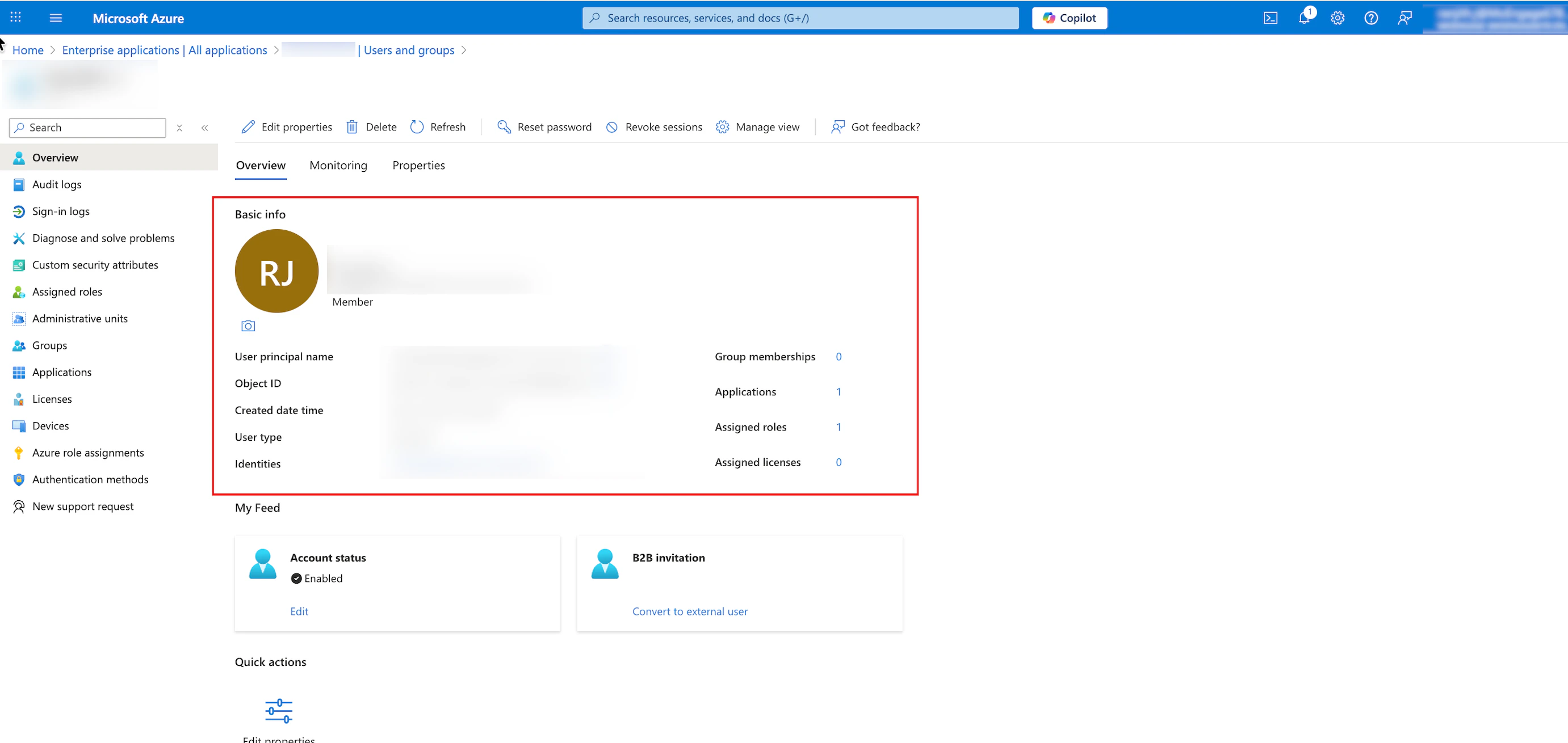 After Microsoft Entra ID successfully updates the user, the Application assignment succeeded message appears in the upper-right corner.