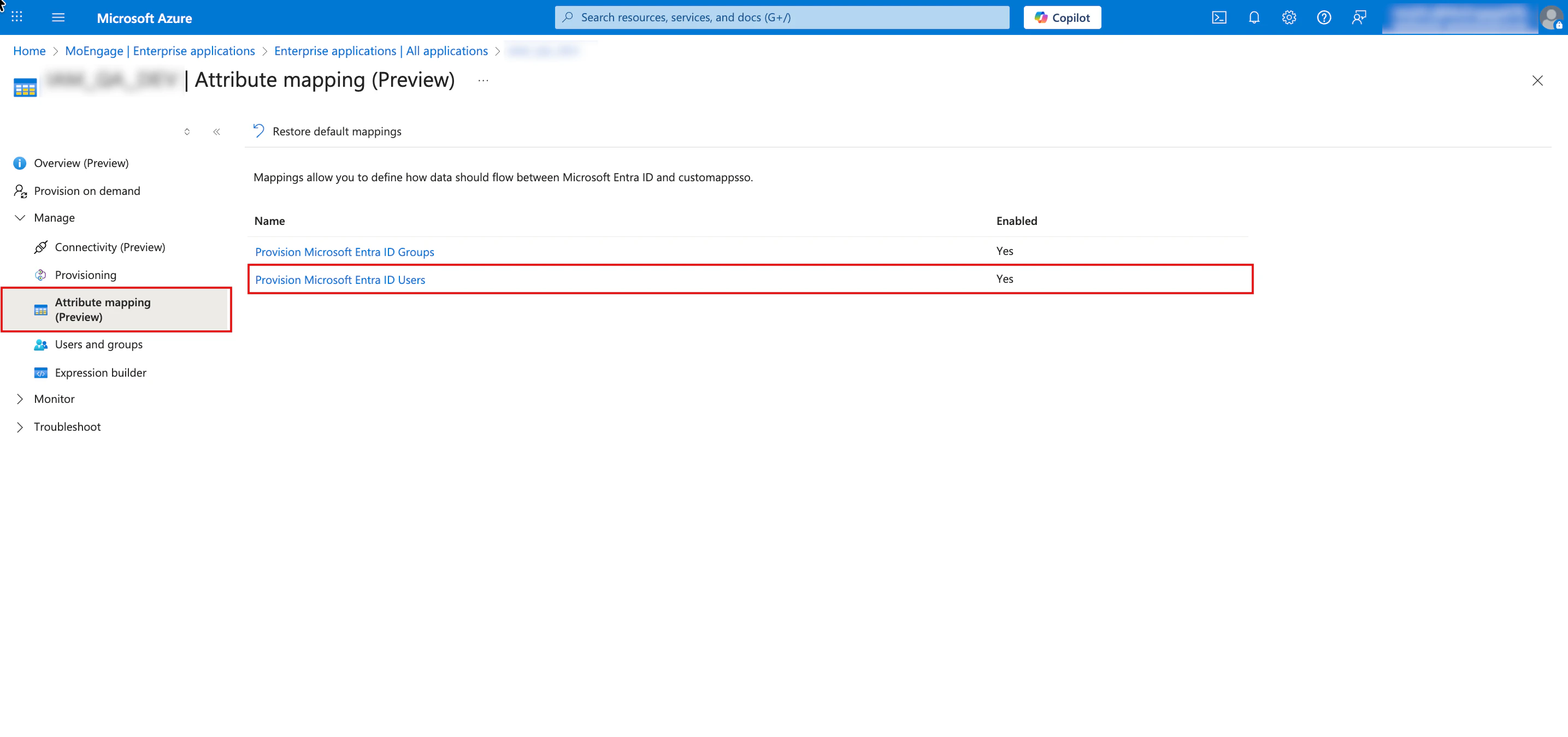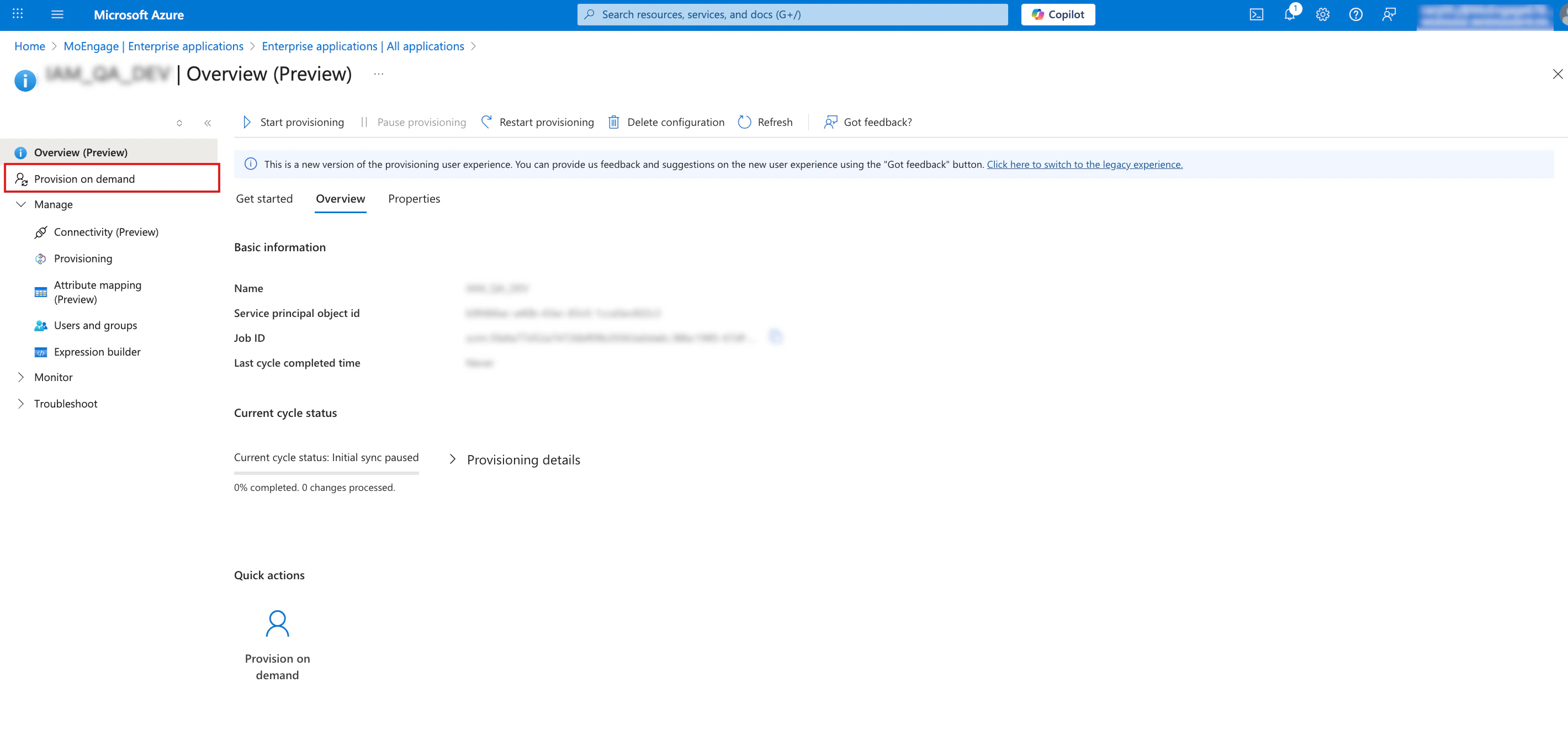 Manual force sync ensures that mapped properties and roles are updated instantly across all assigned users.- Click the Provisioning tab, and in the left navigation pane under Settings, click To App.