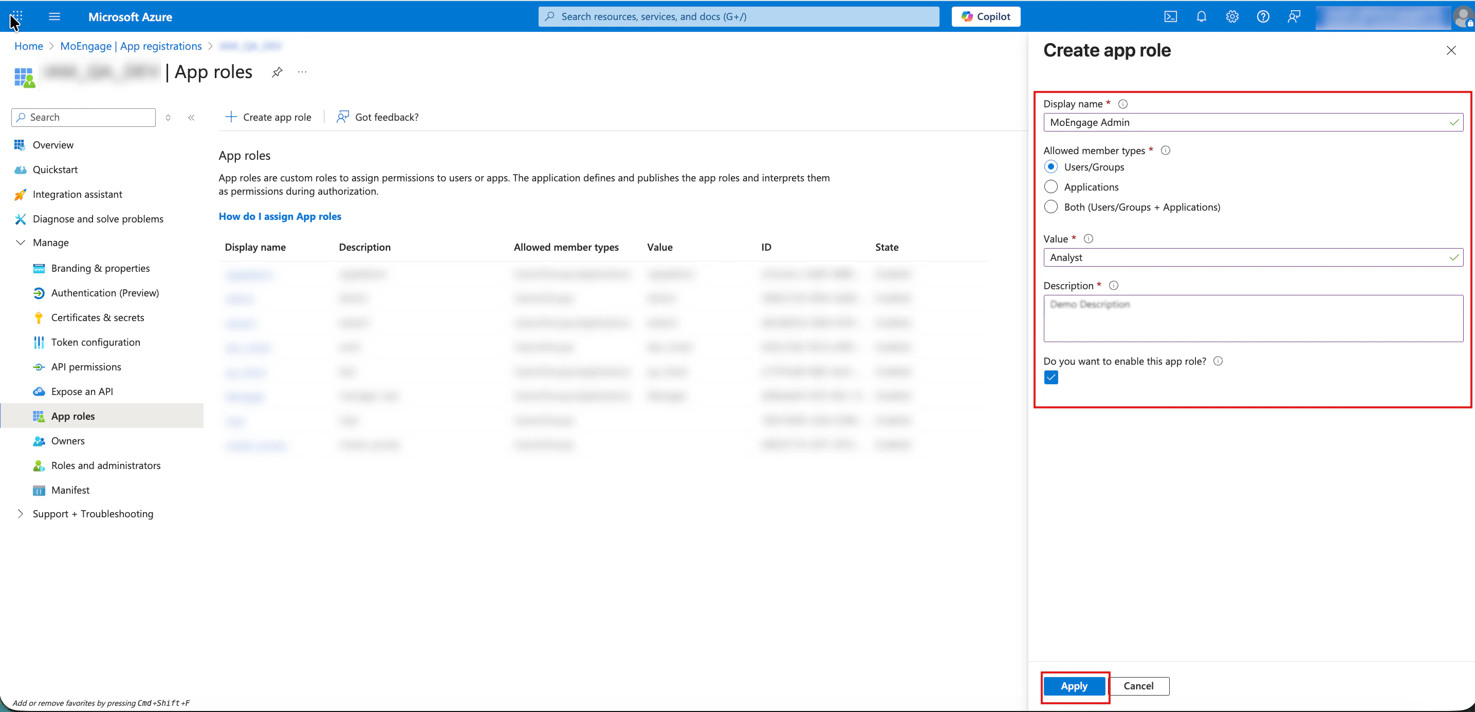 - Role: The specific role name as defined in your MoEngage workspace.