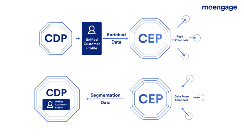 A CDEP essentially collects data from all available customer touchpoints and channels, helping create a unified customer profile. This is primary to any segmentation prior to targeting. While CDPs focus on data collection and profiling, CDEPs not only help with data and customer segmentation but also enable engaging customers with relevant messaging via email, SMS, chat, push notifications, and other channels.