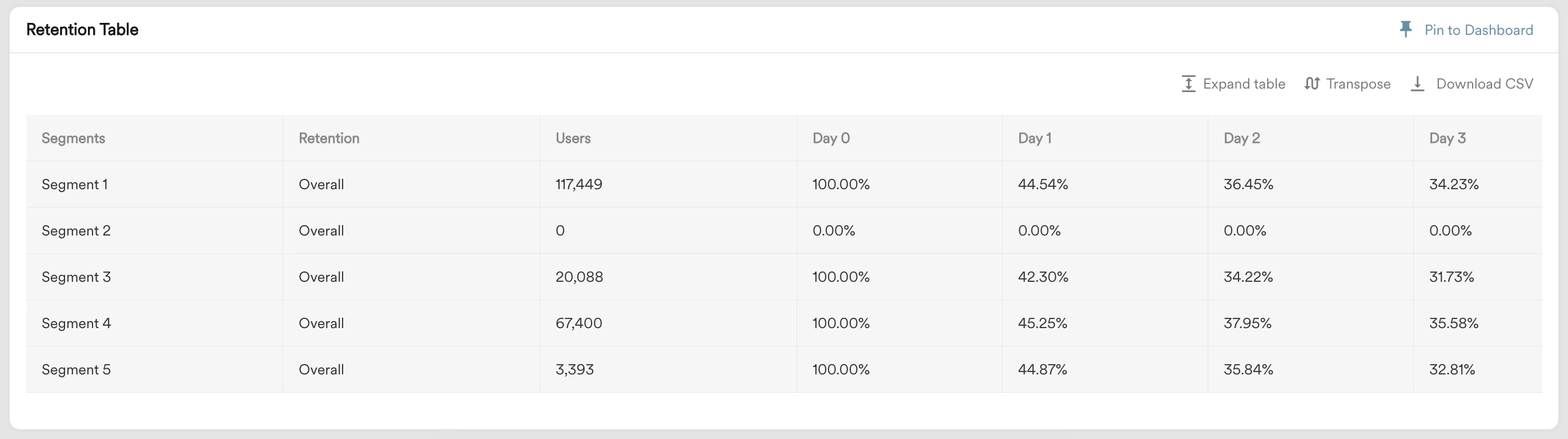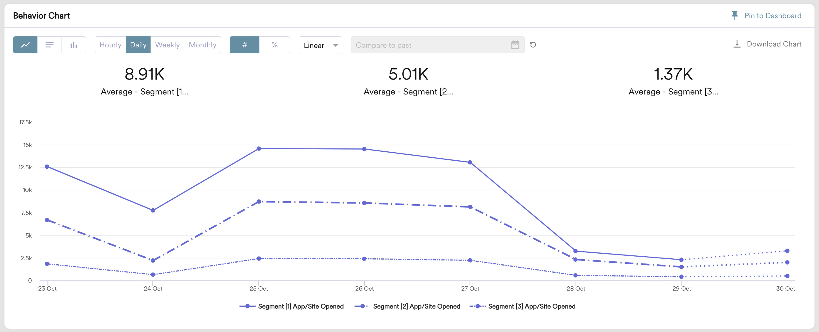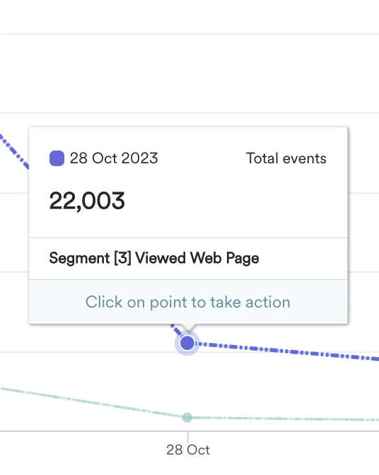 Actionable Analytics can be performed on all segments selected during the analysis. When analyzing behavior and funnel analysis, simply click on the data point of the current duration line or bar to use actionable analytics. For retention analysis, use the retention table of the current duration and apply actionable analytics.
