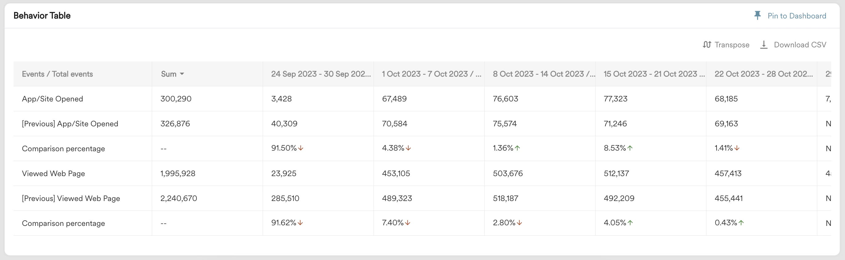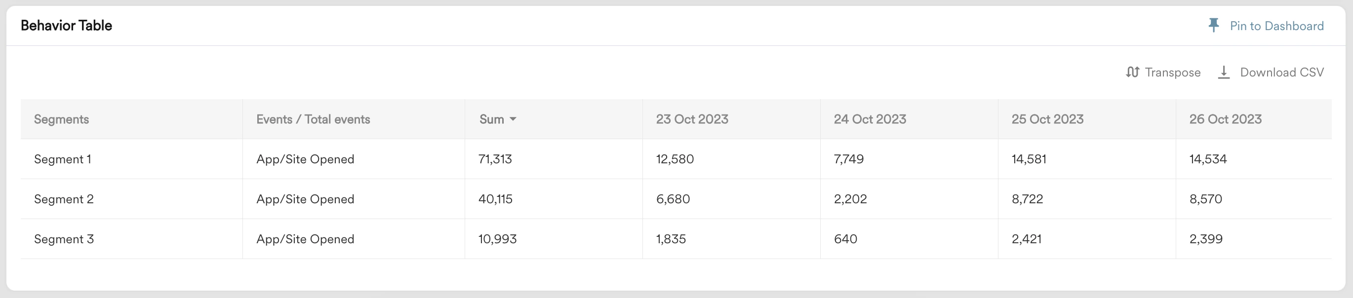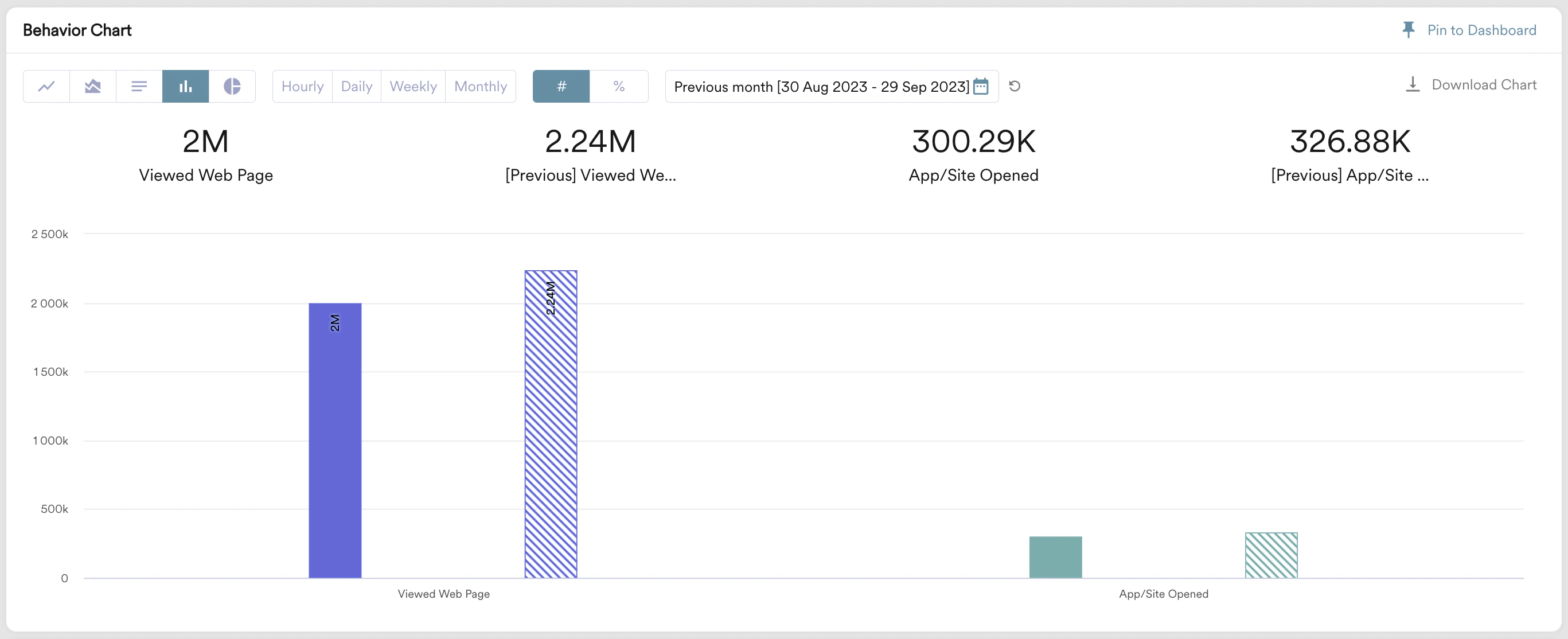 Actionable Analytics can be performed on all segments selected during the analysis. When analyzing behavior and funnel analysis, simply click on the data point of the current duration line or bar to use actionable analytics. For retention analysis, use the retention table of the current duration and apply actionable analytics.
