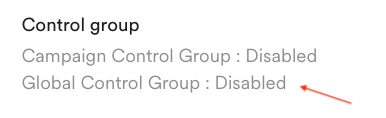 - On the Campaign Info page, you will see Global Control Group: Disabled for campaigns that do not have this option enabled.