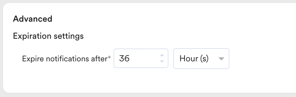 To set the push expiry value, enter a value in the Expire notifications after field.