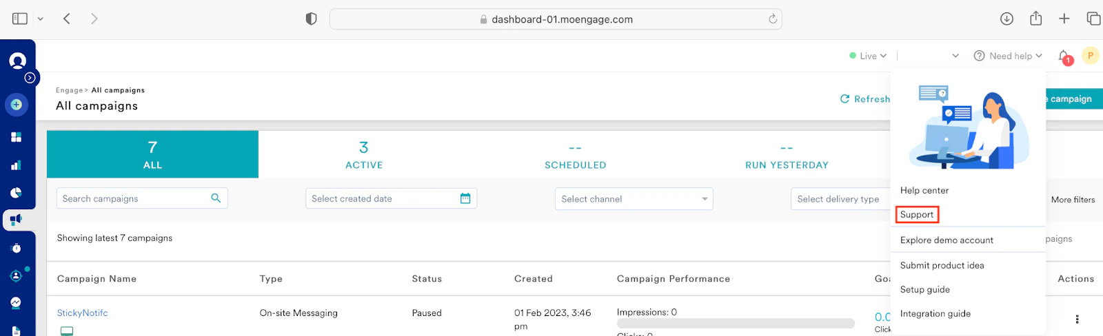 If you are unable to log in, you can create a support ticket from the login page. For more information, refer to Raise a Support Ticket from the MoEngage Login Page.