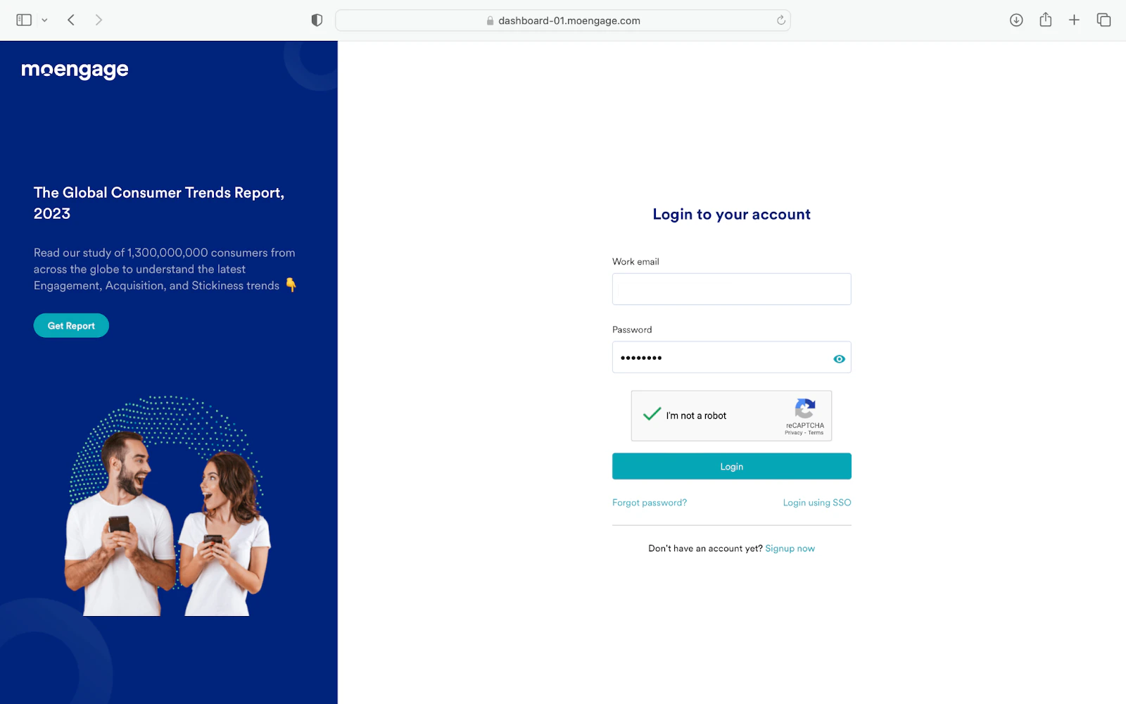Click Login. After your login is successful, you are in the MoEngage dashboard.