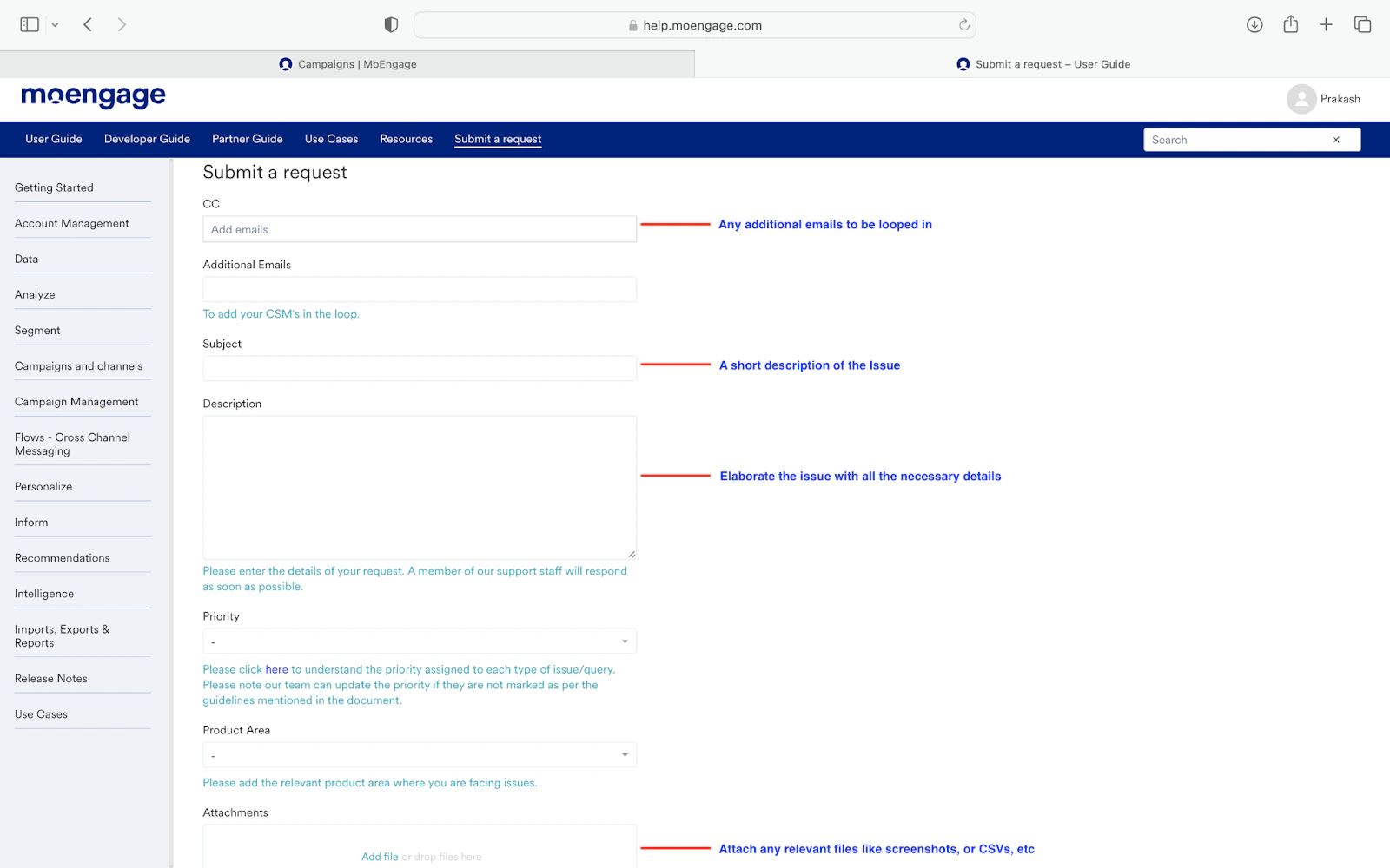 We are updating our support process at MoEngage and transitioning from a web form to the AIRA support bot. This advanced tool allows you to submit queries and create tickets, offering a smooth and expedited experience. Currently, AIRA is under progressive development and is accessed by a limited number of users. However, we are excited to announce that it will soon be fully available, serving as the replacement for the current web form.For more information, read Introducing AIRA.