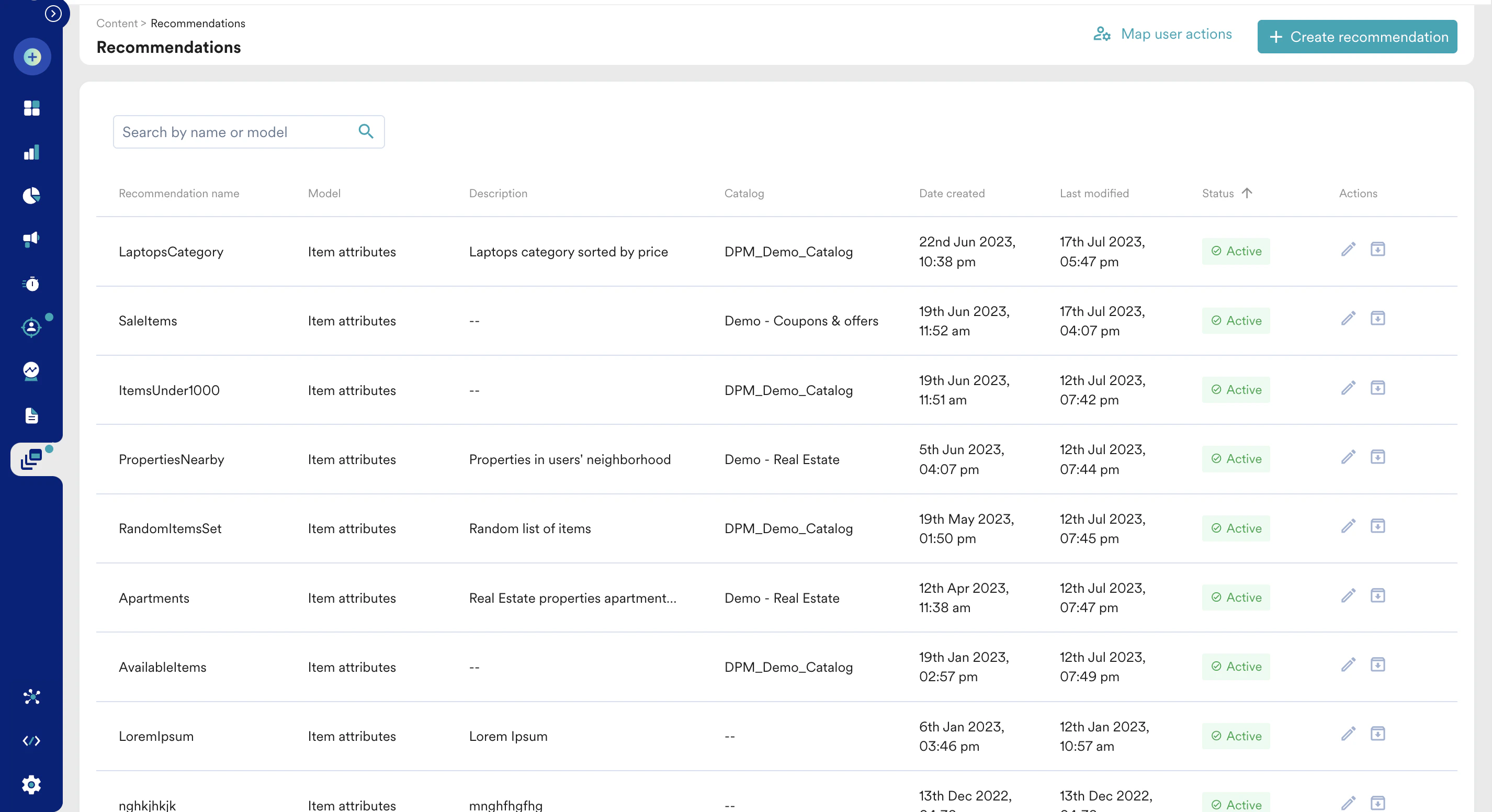 To edit a recommendation, perform the following steps:- On the sidebar menu in MoEngage, hover over the Content menu item