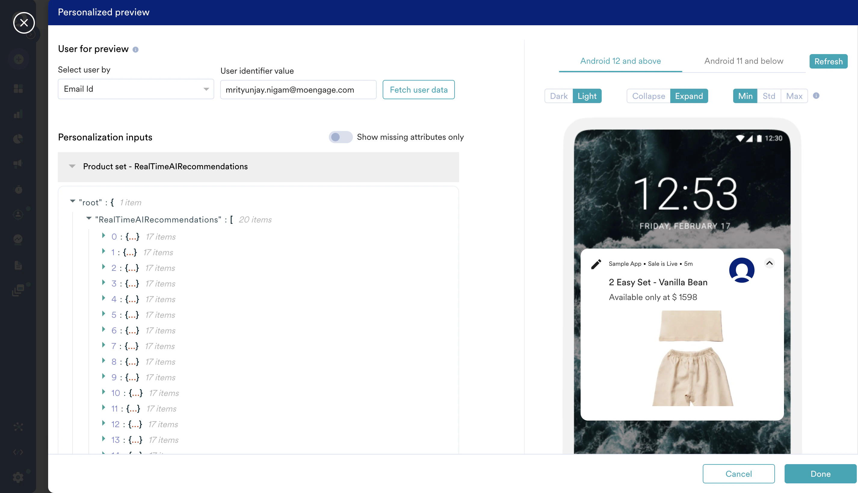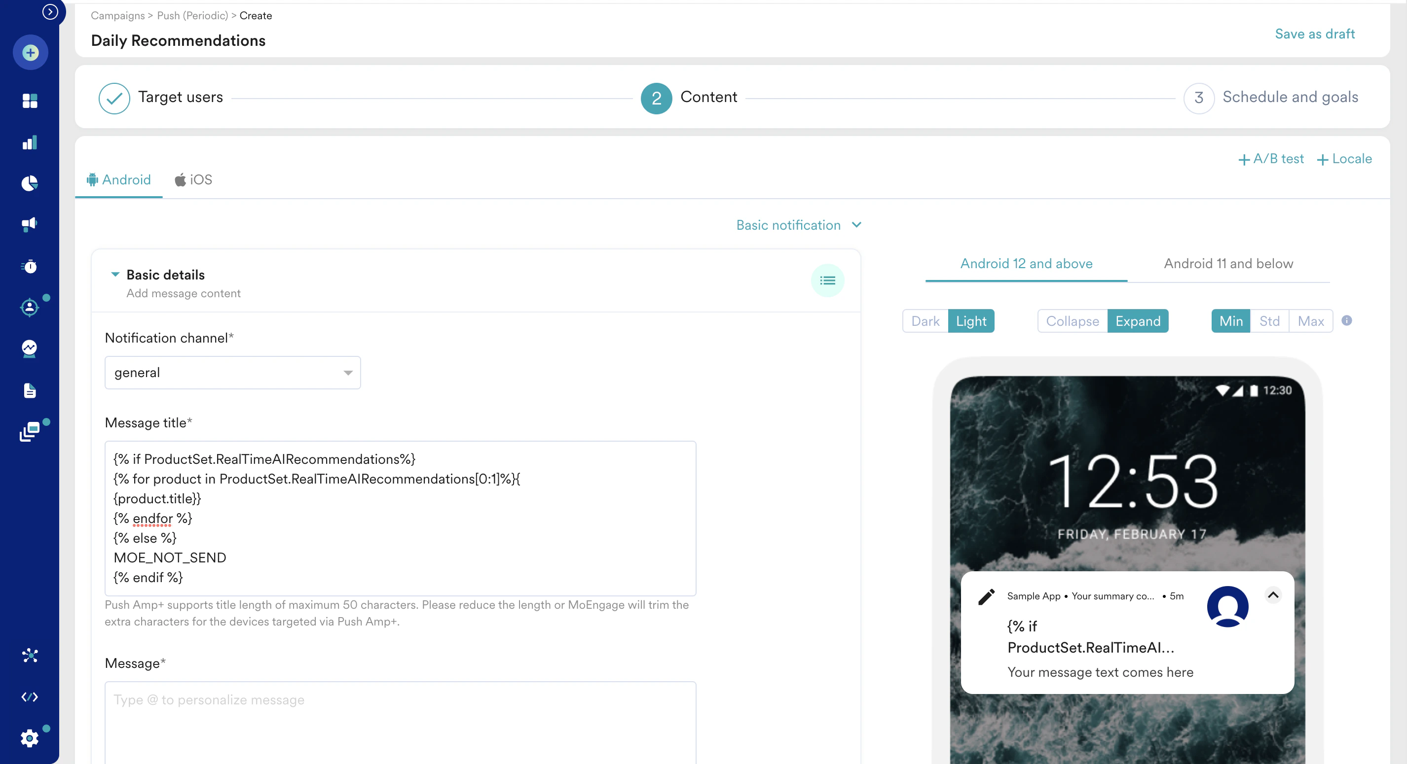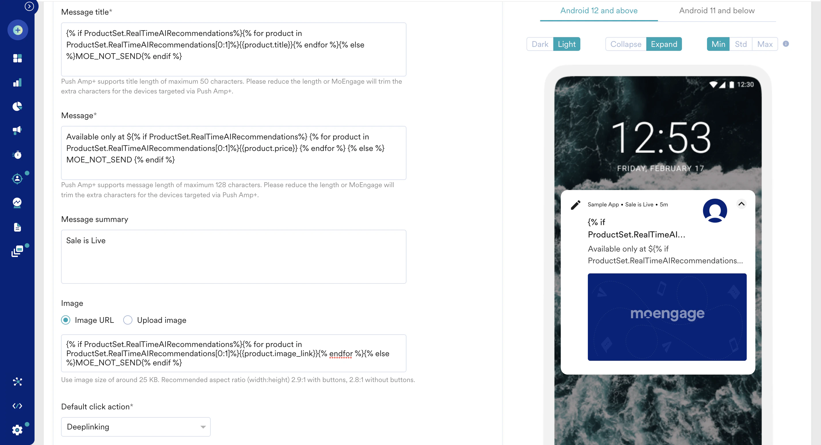- Similarly, define the image URL to personalize notification with the recommended product image.