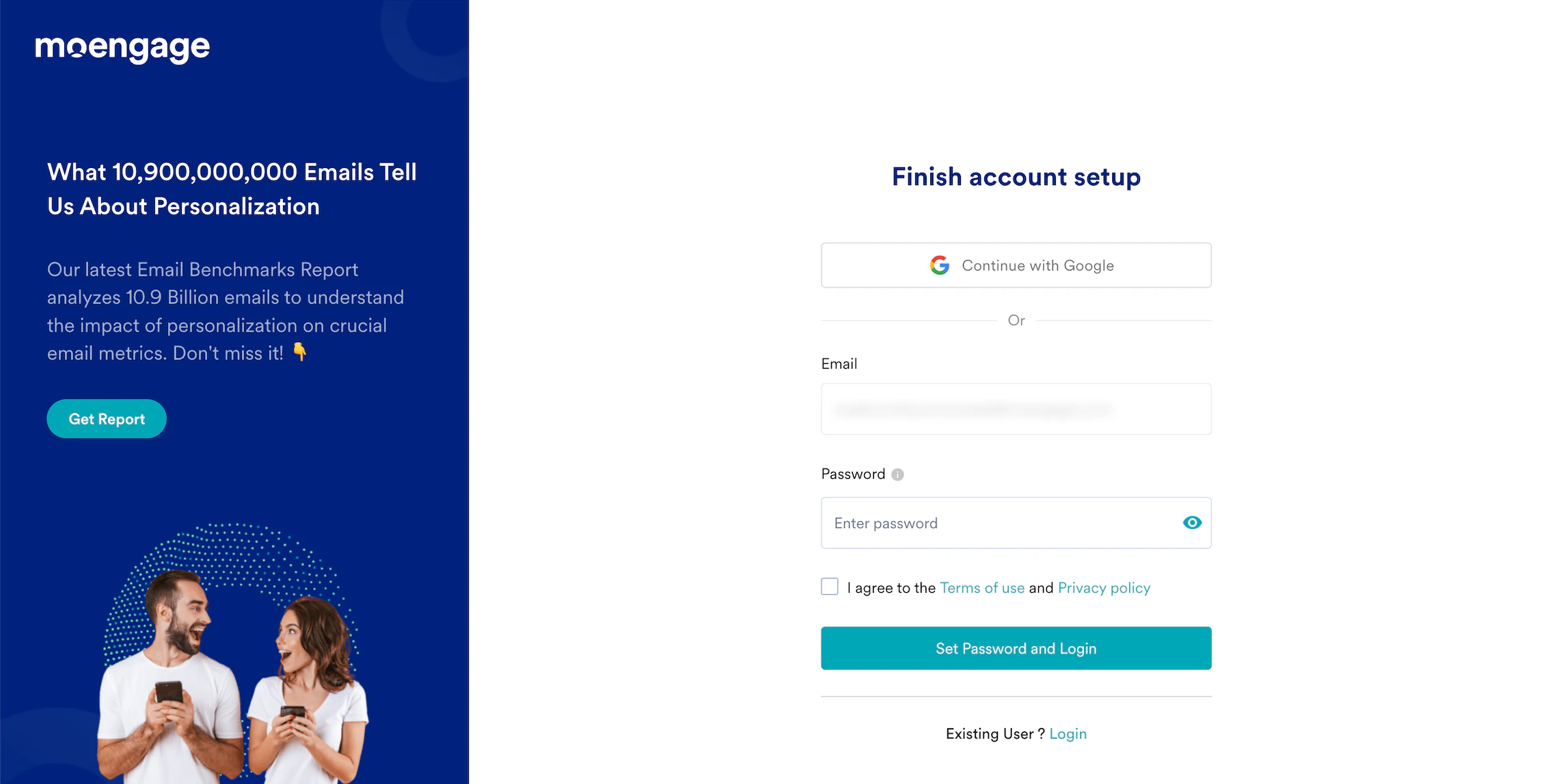Bookmark the MoEngage login page to make future login attempts quicker and easier. If you forgot your account’s login URL, you can easily find it from the MoEngage single login page. For more information, refer to Navigate to Your Account’s Login Page. - You can log in to your account now. For more information, refer to Log in to MoEngage.