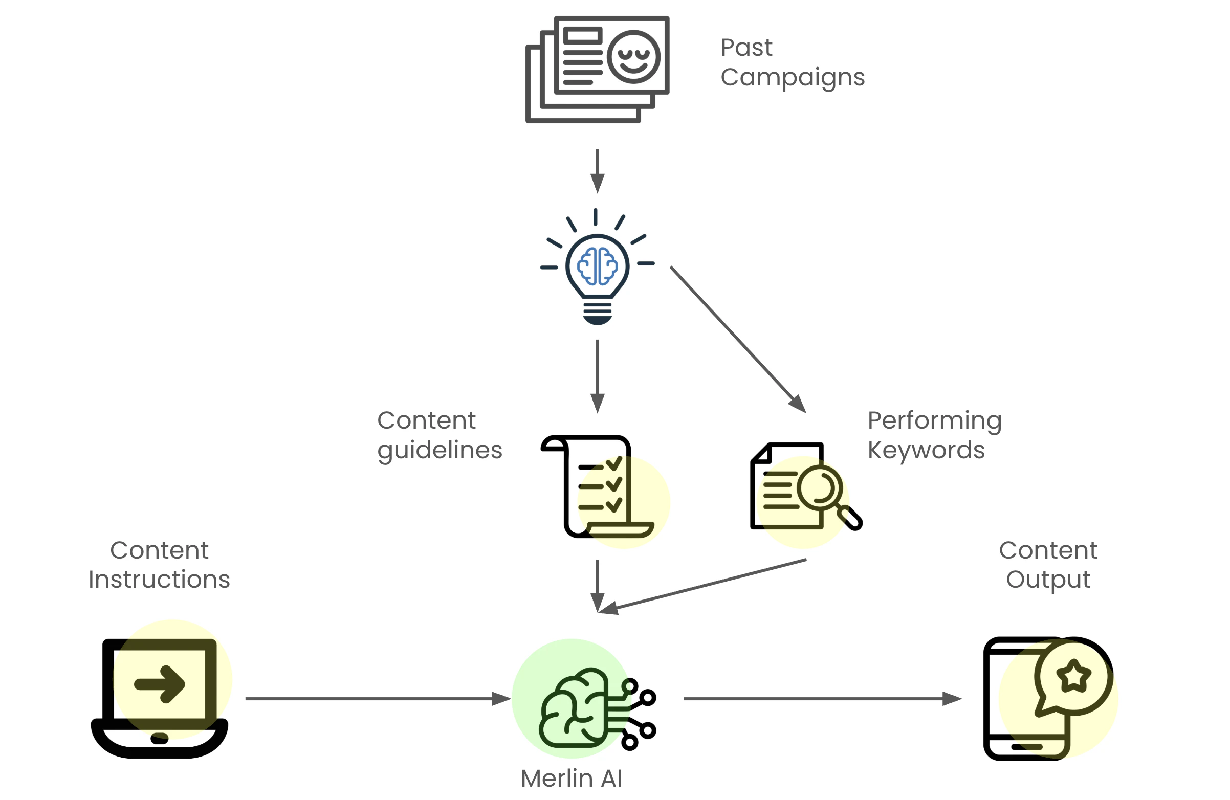 - Generating On-Brand Content: When a marketer provides new Content Instructions for a campaign, Merlin AI blends them with the learned Brand Content Guidelines to ensure the tone and style are a perfect match.