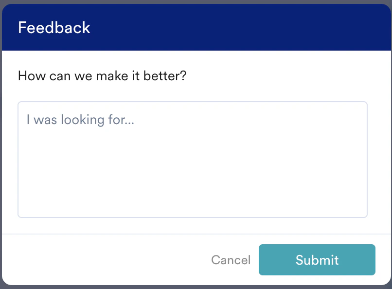 - When you click the thumbs-down option, the Feedback dialogue box will appear.