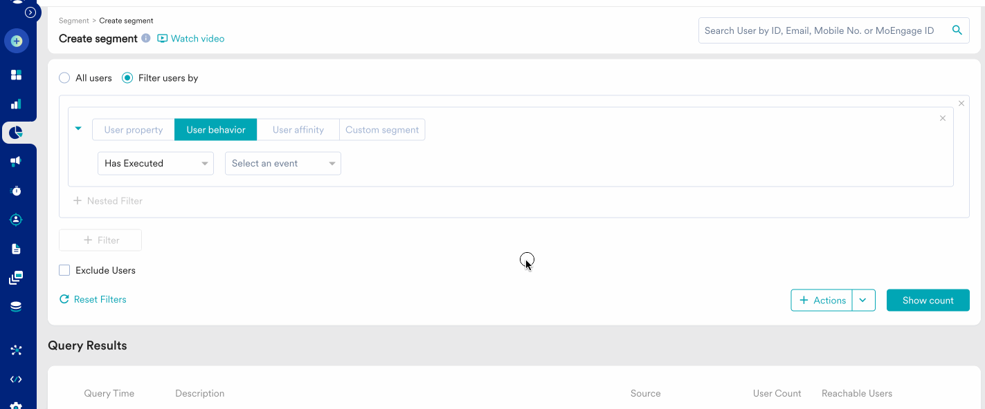 Similarly, you can target users with more conditions e.g. users who have the mobile number present in the user profile but opted out of WhatsApp subscription.
