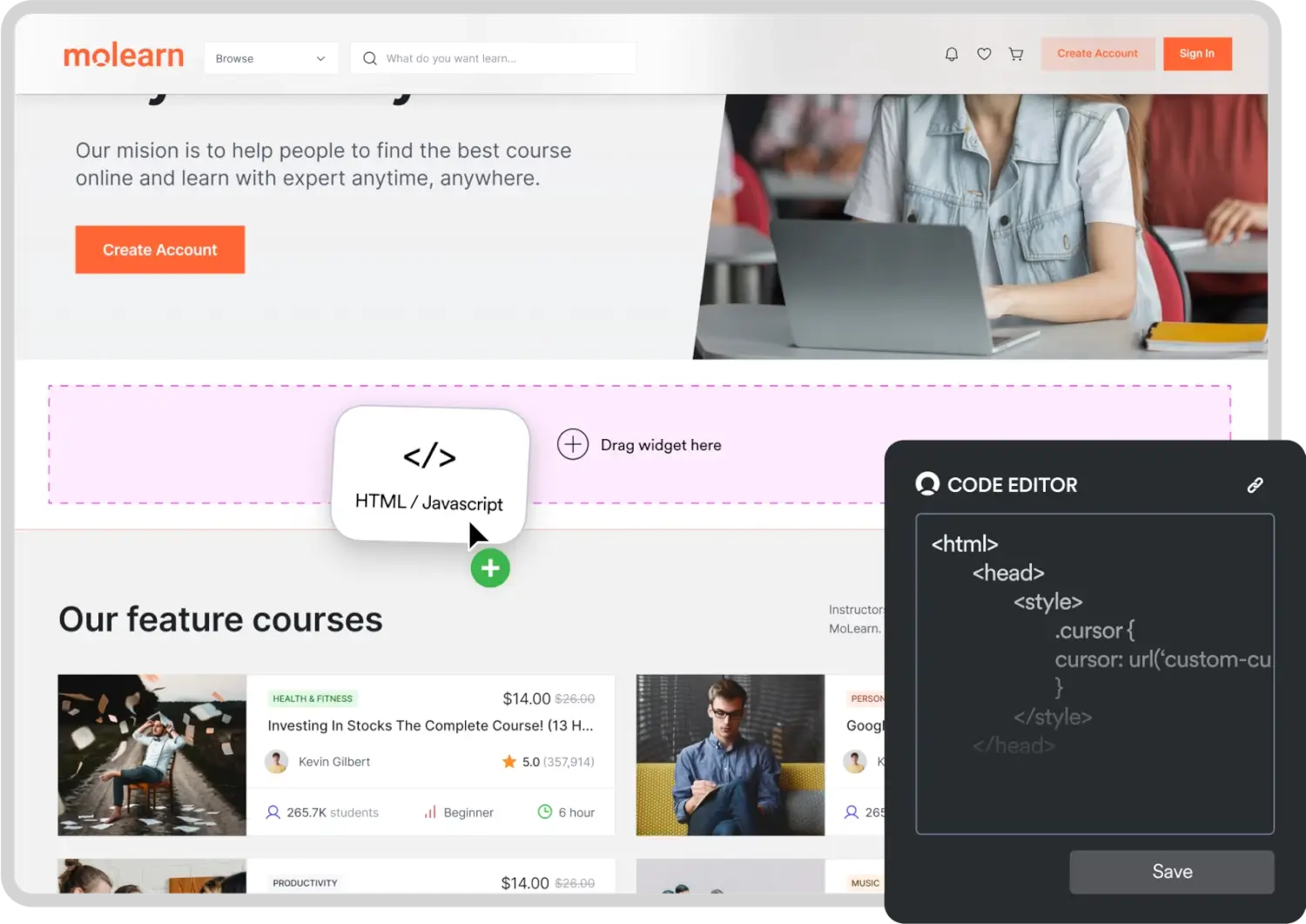 Need something unique for your website? MoEngage’s Code Editor helps you create custom widgets that fit your exact needs.