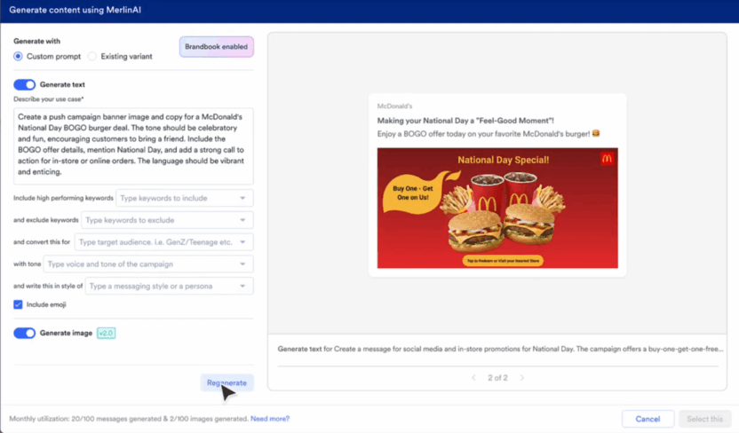 Don’t limit Merlin AI to power just Push Campaigns with its generative content capabilities infused with learnings from prior performance. Now unlock Merlin AI for other channels including Inapp, Onsite Messaging, and Cards.