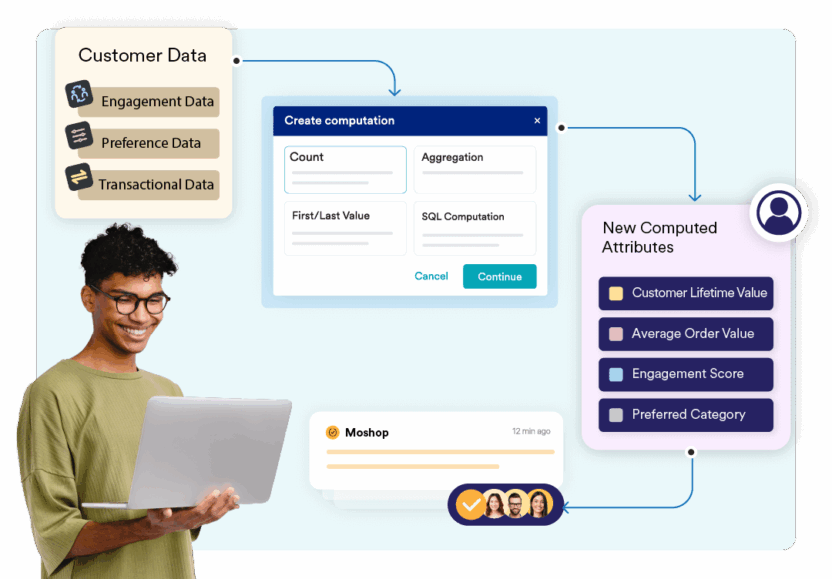 Effortlessly create meaningful new attributes from your existing data — right within the platform. No third-party tools, no engineering dependency, and no delays for faster time to market.