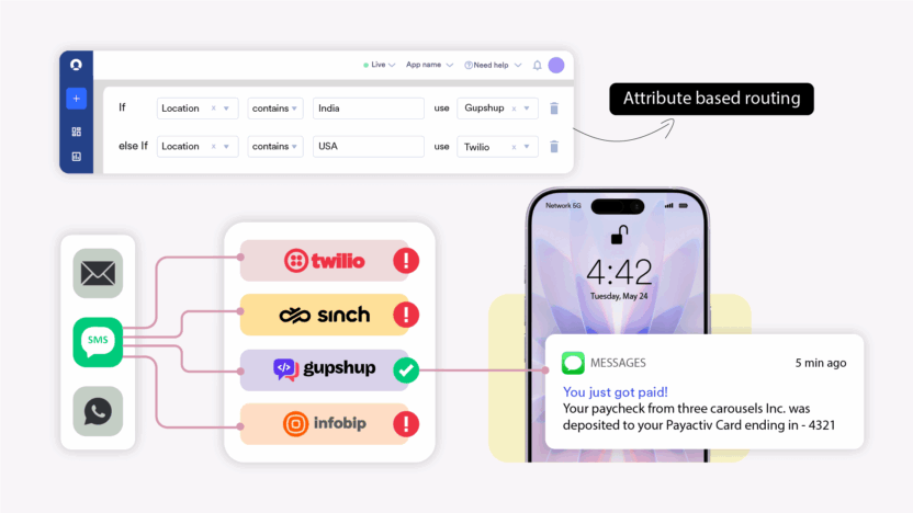 MoEngage Inform automatically chooses the best sender using user attributes or API-based rules for higher deliverability, lower costs, and compliance: no manual selection needed.