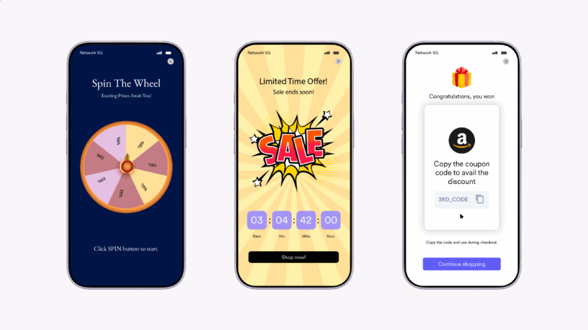 Need interactive campaigns fast? Skip the code and launch engaging Scratch Cards, Spin the Wheel, and Countdown Timers with our simple no-code gamification templates.