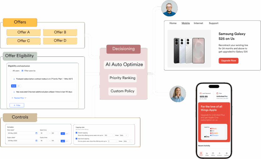 Use goal-based Decisioning Agents to deliver the relevant campaign, with the right value proposition, creative, channel, frequency and timing for every customer.