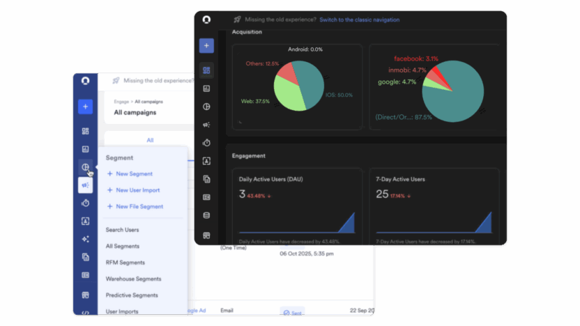 Enjoy a more intuitive MoEngage experience with enhanced navigation, instant user search, and a sleek Dark Mode, all designed to make your daily work simpler and smarter.